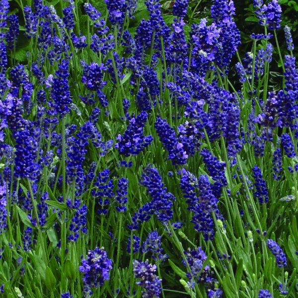 A strain of fully first year flowering lavenders, with large flowering spikes. Producing masses of purple blooms on well branched foliage.