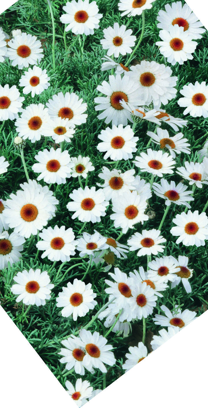 A delightful, spreading, low-growing evergreen perennial. Fine silvery leaves are covered in bright white daisy-like flowers in Summer.