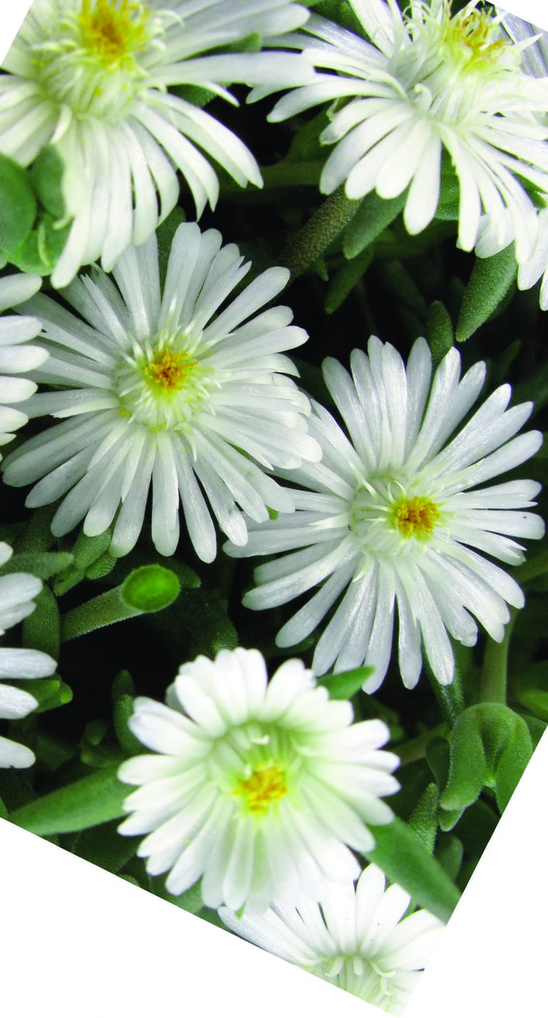 Beautiful bright white starry flowers are produced over a long flowering period, above succulent evergreen leaves. A cheerful plant.